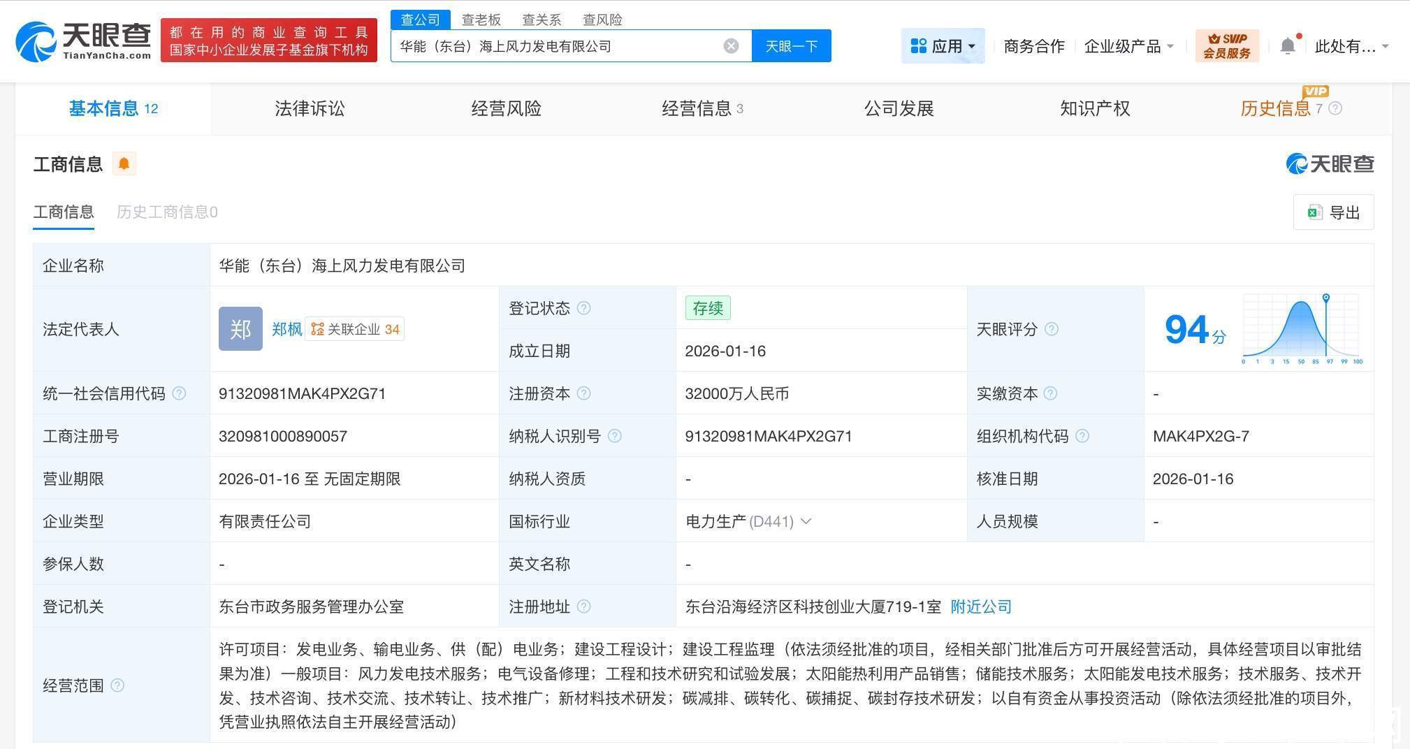 天眼查工商信息显示,近日,华能(东台)海上风力发电有限公司成立配资炒股的投资策略,法定代表人为郑枫,注册资本3.2亿人民币,经营范围含发电业务、输电业务、供(配)电业务,建设工程设计,建设工程监理,风力发电技术服务,电气设备修理,工程和技术研究和试验发展,太阳能热利用产品销售,储能技术服务等。股东信息显示,该公司由华能国际电力江苏能源开发有限公司、盐城黄海汇能绿色能源有限公司、中车资本控股有限公司等共同持股。